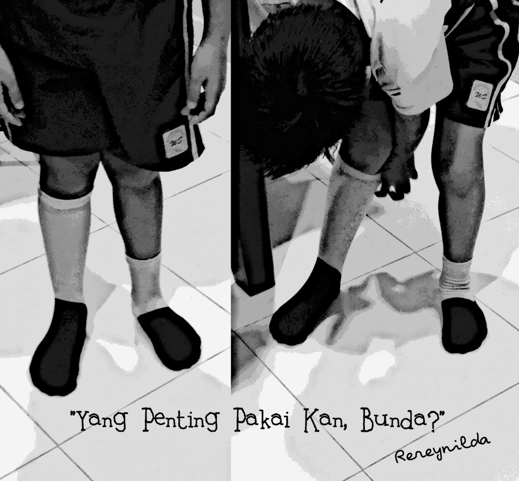 “It’s okay, Bunda. I will fold it down. Nobody will know that I’m wearing a different pair of socks. Chillax. As long as I’m wearing socks, right?”